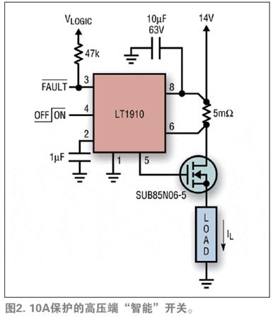 自從功率MOSFET器件推出以來,設(shè)計師們一直將它們視作繼電器的潛在替代產(chǎn)品?,F(xiàn)代N-MOSFET開關(guān)的導(dǎo)通電阻值在一位數(shù)毫歐姆范圍內(nèi),允許使用沒有笨拙散熱結(jié)構(gòu)的標準表面貼裝技術(shù)。目前已經(jīng)開發(fā)出了低價集成電路解決方案,這種方案可提供自含式升壓柵極驅(qū)動功能。這些電路還采用了快速故障保護機制,這樣MOSFET就永遠不會有出現(xiàn)故障的風(fēng)險。凌力爾特公司的LT1910就是這樣的“智能開關(guān)”控制集成電路,該器件利用低阻值高壓端電流檢測電阻(類似圖1(c))檢測電路過載,并在發(fā)生損害之前關(guān)斷正在工作的MOSFET。該集成電路一檢測到過載情況,就設(shè)置一個警告標記,并周期性地嘗試重新啟動該負載,直到故障清除為止。盡管這個集成電路本質(zhì)上只是二進制,但是就用電流檢測形成如圖2所示的堅固“閉環(huán)”電子繼電器解決方案而言,這是一個不錯的實例。