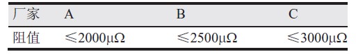 連接盤一般孔徑大,設計時考慮了環寬的要求,質量可以保證,但過孔的質量卻因廠家和工藝技術的不同差異較大??讖酱笥凇?.6 mm,采用開窗涂覆Pb/Sn,問題發生的可能性不大,但對小于∮0.3 mm的過孔,由于孔小鉆孔參數控制不同、溶液交換不順暢等因素,導致孔壁粗糙程度不一,撕裂的深淺不一,孔壁厚度和均勻性不相同。盡量后續采用不同過孔覆涂工藝,如覆蓋阻焊油墨甚至塞孔,但由于塞孔對孔電阻影響不大。因此,孔電阻差異依然存在。表1列舉了不同廠家∮0.25 mm孔電阻測試結果。