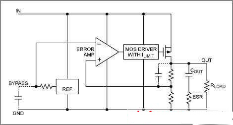 低壓差線性穩壓器(LDO)的結構主要包括啟動電路、恒流源偏置單元、使能電路、調整元件、基準源、誤差放大器、反饋電阻網絡,保護電路等,基本工作原理是這樣的:系統加電,如果使能腳處于高電平時,電路開始啟動,恒流源電路給整個電路提供偏置,基準源電壓快速建立,輸出隨著輸入不斷上升,當輸出即將達到規定值時,由反饋網絡得到的輸出反饋電壓也接近于基準電壓值,此時誤差放大器將輸出反饋電壓和基準電壓之間的誤差小信號進行放大,再經調整管放大到輸出,從而形成負反饋,保證了輸出電壓穩定在規定值上;同理如果輸入電壓變化或輸出電流變化,這個閉環回路將使輸出電壓保持不變,即: