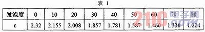 對于發泡電纜,ε與發泡度有直接聯系,PE材料發泡度與電容的關系參見表1。