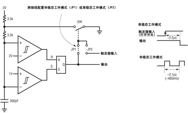 面對(duì)電容器受到的實(shí)際限制,電阻器的選擇變得更加關(guān)鍵了,不過(guò)電阻器也受到一些限制。如果 RC 電路的電阻非常小,就會(huì)產(chǎn)生功耗后果,因?yàn)榇罅抗β世速M(fèi)在電阻器上了。例如,圖 2 中的 RC 電路吸取超過(guò) 1mA 的峰值電流,而且在非穩(wěn)態(tài)工作 (振蕩器) 模式時(shí),兩個(gè)外部電阻器本身就吸取了 450uA 的平均電流1。另一方面,表面泄漏和輸入偏置電流會(huì)限制最大電阻值。在有幾 nA 的雜散或偏置電流時(shí),超過(guò) 10MΩ 的電阻器就會(huì)因?yàn)檫@些電流產(chǎn)生可觀(guān)的誤差。