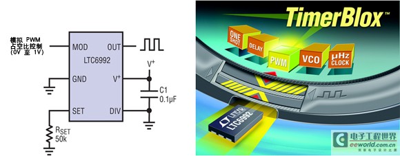 凌力爾特公司最近推出了一個(gè)基于硅振蕩器的定時(shí)器件新系列,即 TimerBloxTM 系列。這些器件含有智能電路,可提供 5 種基本定時(shí)功能:電壓控制振蕩器 (VCO)、面向長(zhǎng)持續(xù)時(shí)間定時(shí)的非常低頻率時(shí)鐘、脈沖寬度調(diào)制振蕩器 (PWM)、單脈沖發(fā)生器和延遲構(gòu)件。作為一個(gè)系列,這些器件涵蓋了 29uHz (9.5 小時(shí)) 至 2MHz 的工作范圍,具有 98% 或更高的典型頻率或時(shí)間準(zhǔn)確度。每個(gè) TimerBlox 器件提供 8 種單獨(dú)的工作頻率 / 時(shí)間范圍,可用一個(gè)簡(jiǎn)單的電阻分壓器進(jìn)行選擇。一旦范圍選定,那么用戶(hù)就可以用 25kΩ 至 800kΩ 的單個(gè)電阻器設(shè)定準(zhǔn)確的頻率或時(shí)間。這種架構(gòu)允許 TimerBlox 系列器件涵蓋很寬的工作范圍,同時(shí)確保電阻器尺寸對(duì)總體準(zhǔn)確度或功耗產(chǎn)生的影響可以忽略不計(jì) (通過(guò)設(shè)定電流產(chǎn)生的雜散電流和功耗可以忽略不計(jì))。TimerBlox 系列器件在 2.25V 至 5.5V 的電源電壓范圍內(nèi)工作,電源電流范圍為 60uA 至 250uA,而且 TimerBlox 器件提供快速、首周期準(zhǔn)確的啟動(dòng)。20mA 輸出提供和吸收能力允許直接驅(qū)動(dòng)光隔離器和變壓器,以實(shí)現(xiàn)電氣隔離。TimerBlox 系列器件采用 SOT23 和纖巧的 DFN 封裝,所有器件都可在 -40°C 至 125°C 的溫度范圍內(nèi)工作。所有這些特色都是為了確保 TimerBlox 系列器件提供最簡(jiǎn)單、靈活和可編程的定時(shí)解決方案。采用這些器件,設(shè)計(jì)師就不會(huì)面對(duì)利用 RC 電路實(shí)現(xiàn)定時(shí)器或提供時(shí)鐘時(shí)所需的無(wú)情選擇了。RC 電路的作用現(xiàn)在可以縮回到一種更適中的水平,人們不再期望用 RC 電路應(yīng)對(duì)“真正嚴(yán)重的定時(shí)問(wèn)題”了。