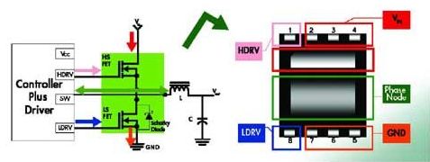 1.帶驅(qū)動(dòng)器和MOSFET的分立式解決方案現(xiàn)在仍在普遍使用。為滿足所有設(shè)計(jì)要求,現(xiàn)在飛兆半導(dǎo)體提供的采用小尺寸熱性能增強(qiáng)型MLP(QFN) 封裝的產(chǎn)品,可獲得高系統(tǒng)性能。MOSFET實(shí)現(xiàn)了首先采用MLP封裝(見(jiàn)圖3所示)。其Power56和Power33產(chǎn)品系列采用最新的PowerTrench技術(shù),能夠同時(shí)提供超低RDSon 和低Qg,從而適用于高開(kāi)關(guān)頻率應(yīng)用。鍵合技術(shù)可減小封裝的電感 ,提高封裝有限的ID ,適用于大電流應(yīng)用。其低端FET產(chǎn)品組合采用SyncFET集成了肖特基二極管 ,在實(shí)現(xiàn)高開(kāi)關(guān)性能的同時(shí)降低了熱耗。