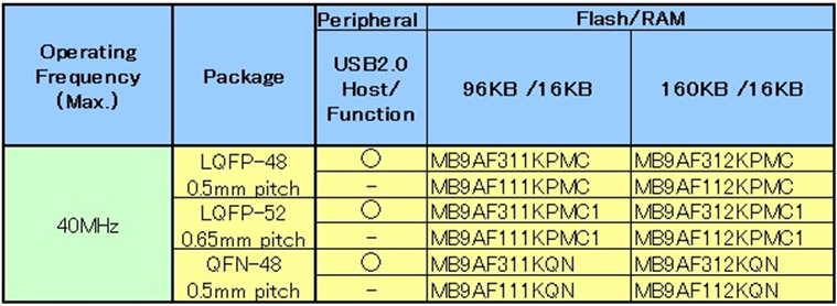 基本產品組:MB9A310K/110 系列 (12款產品)