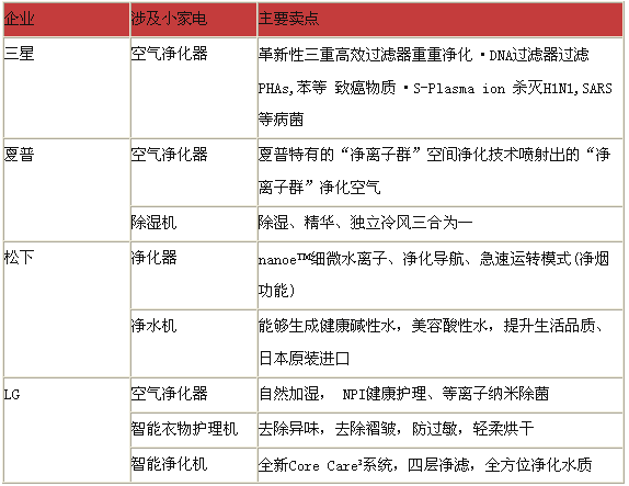 除LG外,松下、夏普、三星等外資企業(yè)均在持續(xù)推出小家電產(chǎn)品,主要涉及空氣凈化器和凈水機兩大產(chǎn)品線,其中空氣凈化器是涉足比較多的一類產(chǎn)品。