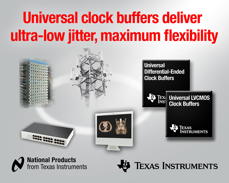 日前,德州儀器 (TI) 宣布推出 2 款最新通用時鐘緩沖器系列,進一步壯大其高性能時鐘緩沖器產品陣營。CDCLVC1310 LVCMOS 時鐘緩沖器可在晶振模式下實現 –169 dBc/Hz 的業界領先相位噪聲底限。LMK00101/05 支持高靈活輸出電壓電平配置,可對該系列實現有力補充。LMK00301/04/06/08 差分端系列支持 51 飛秒 (fs) 超低附加抖動。
