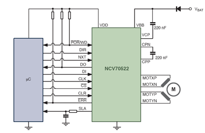 圖3:NCV70522單芯片微步進(jìn)電機(jī)驅(qū)動(dòng)器