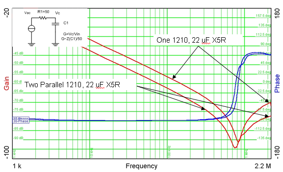 圖 1 并聯電容阻抗寄生現象衰減效果