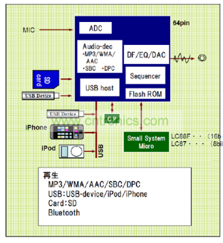 安森美半導體新開發的DSP無機芯方案包含各種音頻格式編解碼,可以支持多種外接設備如USB、iPad、iPhone、SD卡和藍牙等。內部算法還包括了音效處理功能;另外,還預留了CD-DSP接口,將CD機芯作為可選配置,實現平臺化設計,目前已有相應產品推出。圖6是安森美半導體的無機芯DSP方案。