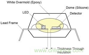 飛兆半導體的 FODM8801 OptoHiT 系列采用專有 OPTOPLANAR® 共面封裝技術進行封裝,這有助于提高低電流下的性能。 圖 2 展示了 OPTOPLANAR 技術的截面圖。