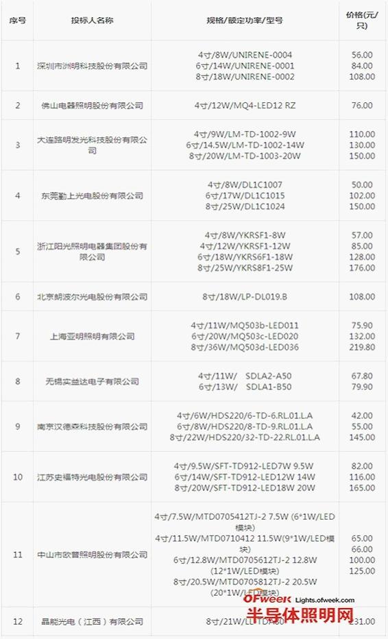 824日,中國電子進出口總公司發布2012/2013年度半導體照明產品財政補貼推廣專案(室內照明產品-LED筒燈、反射型自鎮流LED)以及(室外照明產品-LED路燈、LED隧道燈)中標入圍結果。