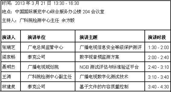 在同期舉行的“CCBN 2013廣播影視發(fā)展論壇”的“廣播電視測試技術與儀器”分會場上,泰克公司還將作為獨家測試測量儀器提供商受邀參與主題為“廣播電視新技術體系下,廣電行業(yè)設備與系統(tǒng)檢測與測試的未來發(fā)展趨勢”的研討,并帶來兩場泰克測試方案公開課。
