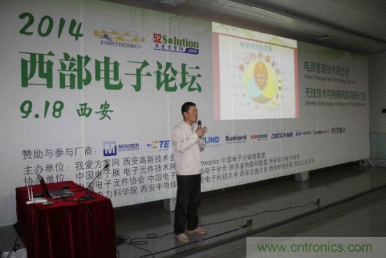 2014年9月22日, 深圳 - 2014福創(chuàng)西部電子論壇近日在西安高新區(qū)都市之門隆重舉行。兩個技術研討會:電源管理技術研討會和無線技術與物聯(lián)網(wǎng)應用研討會將針對西部工程師的設計挑戰(zhàn),讓供需雙方的專家們充分互動。此次活動由我愛方案網(wǎng)與西安高新區(qū)高新技術企業(yè)協(xié)會合作,攜手電子元件技術網(wǎng),中國電子展和中國電子授權分銷商聯(lián)盟。西安高新技術企業(yè)協(xié)會理事長劉明華等領導出席了此次活動。福創(chuàng)電子論壇是歐洲領先的技術交流平臺。詳細會議內(nèi)容請查看我愛方案網(wǎng)和電子元件技術網(wǎng)的跟蹤報道。