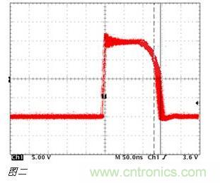 下面這種情況有非常多的人會忽視,甚至是一些比較有經驗的電源測試工程師。下面組圖四是下管打開,上管關閉時候的波形(圖4-1是示意圖,圖4-2示實際測試圖)。雖然沒有被同時帶起的情況,但是請注意上下管有交叉的現象,而且交叉點的電平遠高于MOS管規定的Vth值,這是個嚴重的shoot through現象。最直接的后果就是MOS管燒毀!