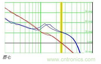 我們有可能會看到的相位裕量不能達到要求。如下圖七,只有30度左右。這個時候,只有調試不同的參數,才能得到比較好的結果。從而滿足系統穩定性的要求。