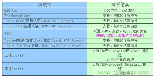 從測試結果可以看出:對于原有使用Portal認證的WLAN網絡,iPhone 4/iPad使用其自帶的Safari瀏覽器可以很好的支持,與H3C AC/AP適配性良好。