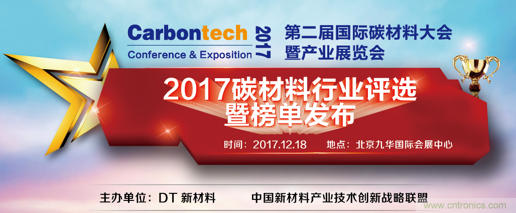 由DT新材料發(fā)起的“2017碳材料行業(yè)百強評選”已于2017年9月份正式啟動,本屆評選活動聯(lián)合百余家知名戰(zhàn)略合作媒體共同舉辦,特邀國際學術專家、企業(yè)精英、投資人、政府人員和媒體從業(yè)者等十余位組成專家評審委員會,為碳材料行業(yè)最具代表性、專業(yè)性和影響力的評選活動。