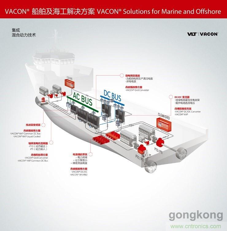 其中,丹佛斯變頻器VACON®和VLT®系列產品的船舶與海工解決方案,已覆蓋海事領域的各類應用。除此,丹佛斯還提供先進的混合動力解決方案。