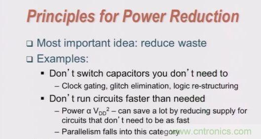 •動(dòng)態(tài)電壓頻率調(diào)整(DVFS):動(dòng)態(tài)調(diào)整頻率電壓到需要的值,避免浪費(fèi),從而降低功耗。