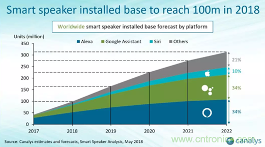 自亞馬遜在2014年底發布了其第一款智能音箱Echo后,全球、尤其是國內掀起了一股狂熱的智能音箱潮,據不完全統計,截止到今年三月,中國大陸有近百家廠商進入智能音箱市場。分析機構Canalys最近報告指出,預計今年全球智能音箱的保有量突破一億部,到2020年這個數字將會上升到2.25億智能音箱廠商競爭,其實是智能家居生態入口的競爭。