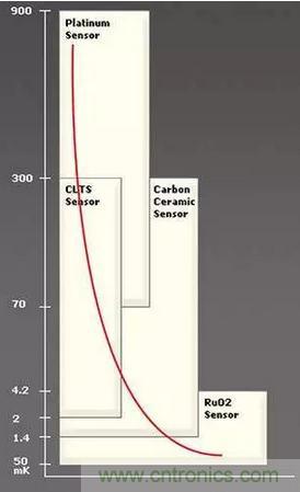 有些令人驚訝的是,一些在“普通”溫度下的常用傳感器甚至可以在較寬的個位數(shù)區(qū)間內(nèi)工作(圖1),其中包括RTD(使用鉑或銠鐵)、鍺,甚至經(jīng)典的碳基電阻器。然而,這些裝置的強磁場會引起幾K的傳感器誤差。研究現(xiàn)狀是,對低K傳感的需求非常大,以至于這些傳感器是許多供應商提供的標準目錄產(chǎn)品(想一想,這是相當驚人的)。