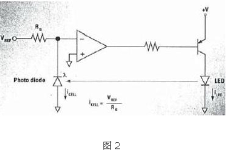 硅光電二極管的結(jié)構(gòu)除P層非常薄外其他與PN結(jié)二極管類似。調(diào)節(jié)P層厚度適合于所檢測的光波長。光電二極管也具有電容,電容與所加反向偏置電壓成正比,其電型值為2~20pF。光電二極管有兩個端:陽極和陰極。二極管可用在正向模式(電流從陽極流向陰極)或反向模式(電流從陰極流向陽極)。當所用光電二極管處于反向模式(陽極負)時,它與給定頻率的光照是嚴格線性關系,這是有利的特性。線性特性使得建造控制電路變得相當容易。
