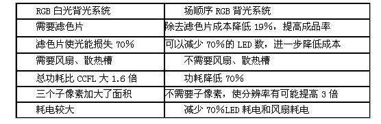 不過,也只有采用場(chǎng)順序以后才能使得LED背光實(shí)現(xiàn)商業(yè)化,也才能夠真正和CCLF競(jìng)爭(zhēng)。