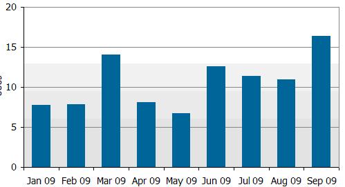 以上主要摘要說(shuō)明2009年9月份及第3季北美大型商用顯示器市場(chǎng)終端銷售成果,資料主要摘錄自Monthly Large Format Commercial Displays Sell Through Report。
