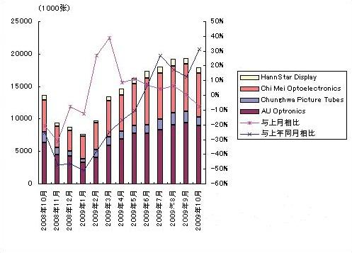 • 2009年10月臺灣大尺寸液晶面板供貨量比上月減少7.5%,為1788萬塊