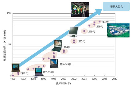 - 玻璃基板的大型化對之后液晶產業的發展做出了重大貢獻