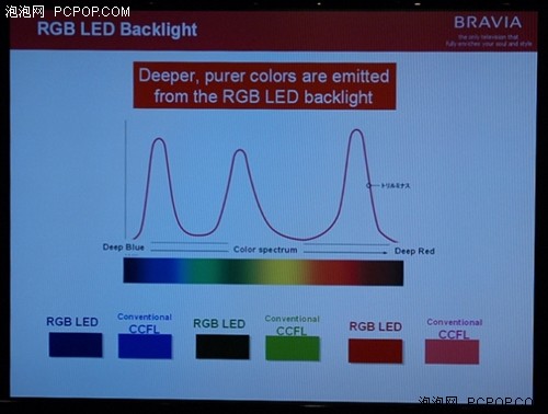 此外,RGB-LED在光譜特性上也大幅優于CCFL。RGB三種LED發出的三原色光非常純正,能量高度集中.這點在最后的色域范圍方面體現的最為明顯。據工程師介紹,采用了“動態麗彩LED背光源”的BRAVIA在實驗室中測得的色域范圍已經接近普通液晶的2倍,達到了一個前所未有的新高度。因此,的旗艦BRAVIA也實現了對最新廣色域標準x.v.Color的支持,如果配合使用支持x.v.Color色域的攝像機使用,消費者將看到非常逼真自然的色彩和畫面。