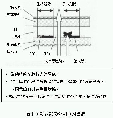 只需關閉電子驅動的液晶顯示器的shutter,便可獲得與一般平面顯示器同等質的二次元影像。
