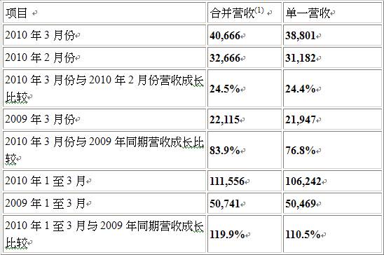 - 友達光電2010年3月份合并營業額達新臺幣406.66億