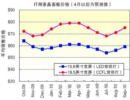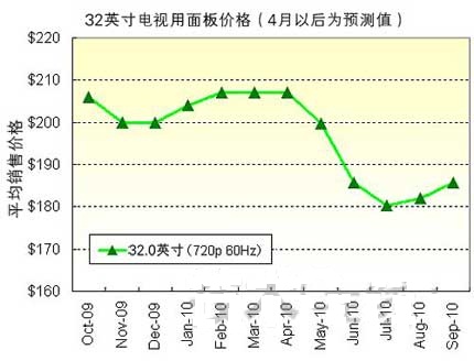 - 預計2010年第三季度32英寸用面板價格為180~185美元左右