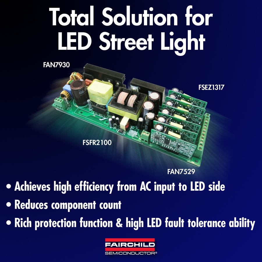 - 飛兆半導體公司開發出一款完整的LED路燈照明解決方案