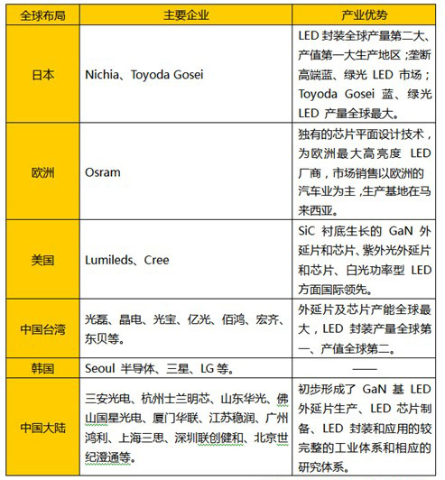 中國大陸和臺灣地區進入led產業較晚,led企業的資金實力、技術水平與歐、美、日企業有一定差距,因而多專注于產業鏈的某個環節、走專業化道路。隨著,中國大陸和臺灣地區企業在資金實力和技術水平的提升,目前在封裝領域,發光效率、顯色指數等主要指標方面國內外已不存在明顯差距。