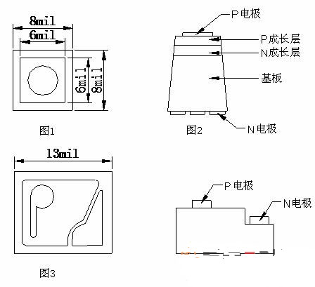 焊單線正極性(P/N結構)晶片,雙線晶片。晶片的尺寸單位:mil