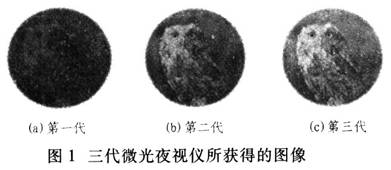圖1所示是用三代微光夜視儀在同樣條件下分別獲取的圖像,從圖中可明顯看出第三代要優(yōu)于第二代,而第二代又遠(yuǎn)遠(yuǎn)優(yōu)于第一代。