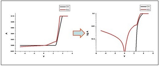 2. 變色:這類(lèi)失效是指LED不點(diǎn)亮的狀況下,外觀顏色或膠材透明度與新品不同,用肉眼即可看出,通常在產(chǎn)品使用一段時(shí)間或在做完可靠度試驗(yàn)后發(fā)生。一般說(shuō)來(lái),變色區(qū)域大致可區(qū)分為發(fā)生在導(dǎo)線架或封裝膠材兩類(lèi),若發(fā)生在導(dǎo)線架,通常是因?yàn)楸砻媾c環(huán)境中的化學(xué)物質(zhì)發(fā)生反應(yīng),如氧化或硫化,要分辨屬于哪種需仰賴成份分析,可使用的儀器包含有EDS(Energy Dispersive X-ray Spectroscope)、XPS(X-ray Photoelectron Spectrometer)、AES(Augur Electron Spectroscope)等等。若是封裝用的膠材發(fā)生變色,則屬于高分子材料的劣化現(xiàn)象,如環(huán)氧樹(shù)脂易受高溫或是紫外光影響而變黃,因此白光LED多改采矽膠取代之。分析此類(lèi)失效應(yīng)特別留意,因膠材本身有一定的透明度,有時(shí)變色的導(dǎo)線架因被膠材蓋住而誤判為膠材變色,引導(dǎo)至錯(cuò)誤的改善方向。