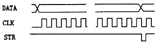 如以單色點(diǎn)陣、16 行×64 列為一個(gè)基本單元,則需用8 片74HC595、64個(gè)8050及16個(gè)行掃描管, 其工作原理為:將八片74HC595 級(jí)連,共用一個(gè)串行時(shí)鐘CLK及數(shù)據(jù)鎖存信號(hào)STR。當(dāng)?shù)谝恍行枰@示的數(shù)據(jù)經(jīng)過(guò)8×8= 64 個(gè)CLK時(shí)鐘后將全部移入74HC595 中,此時(shí)產(chǎn)生一個(gè)數(shù)據(jù)鎖存信號(hào)STR,使數(shù)據(jù)鎖存在74HC595的后級(jí)鎖存器中,則與其各輸出位對(duì)應(yīng)的8050 將處于飽和導(dǎo)通或截止; 同時(shí)由行掃描控制電路產(chǎn)生信號(hào)使第一行掃描管導(dǎo)通,相當(dāng)于第一行LED的正端都接高平,顯然第一行LED管子的亮滅就取決于74HC595 中所鎖存的信號(hào);在第一行LED管子點(diǎn)亮的同時(shí),在74HC595 中移入第二行要顯示的數(shù)據(jù),隨后將其鎖存,并同時(shí)由行掃描控制電路將第一行掃描管關(guān)閉而接通第二行,使第二行LED 管子點(diǎn)亮。以此類(lèi)推,當(dāng)?shù)谑袙呙柽^(guò)后再回到第一行,只要掃描速度足夠高,就可形成一幅完整的文字或圖像,其工作時(shí)序見(jiàn)圖2。
