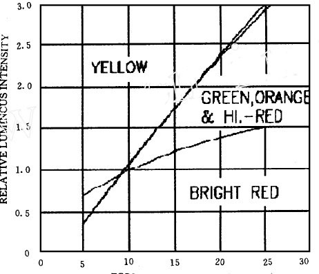 圖3 給出了發(fā)光二極管的相對(duì)亮度與其中流過(guò)的電流之間的關(guān)系,從曲線中可以看出: 在一定的正向電流工作范圍內(nèi),其發(fā)光亮度與其中流過(guò)的電流近似成正比,屬于電流驅(qū)動(dòng)型器件。所以只要能保證每個(gè)L ED 發(fā)光管中流過(guò)的電流為一常數(shù),就能保證其亮度一致。