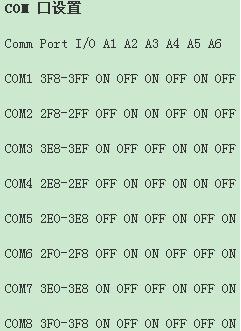 關于COM端口與中斷跳線的組合應按如下設定,特殊情況例外。