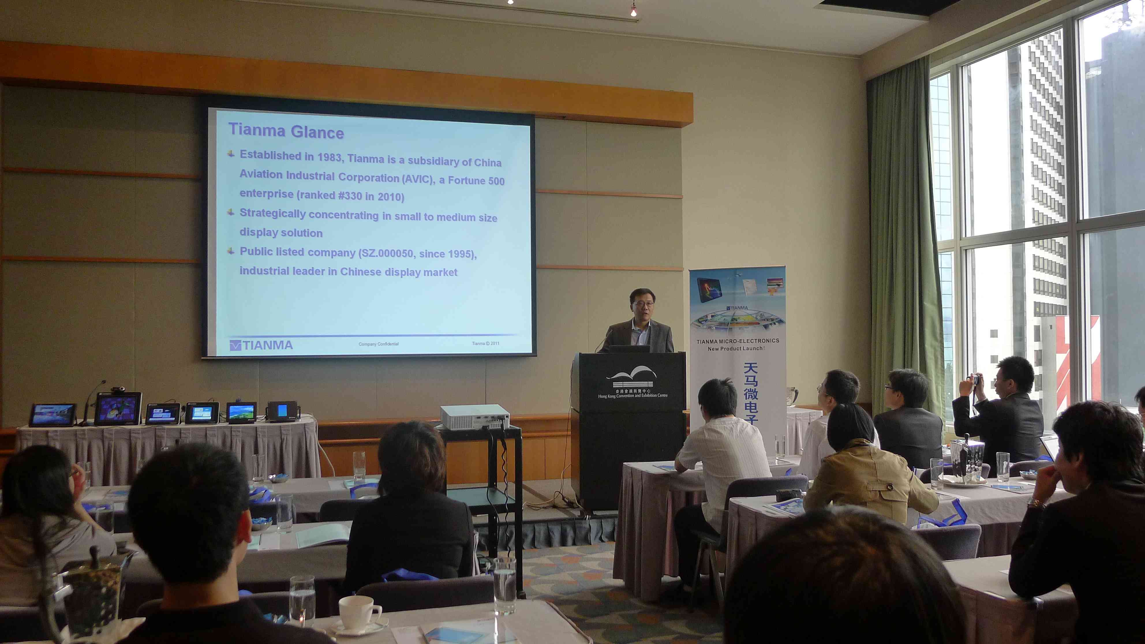 天馬微電子(以下簡稱天馬)于10月13~16日在香港會議展覽中心舉辦的2011年國際電子組件及生產技術展(ElectronicAsia)展出最新產品。天馬微電子營運副總經理歐陽旭表示,透過與合并NEC的技術與產線,天馬期望在2015年能成為全球前3大中小尺寸面板供貨商。
