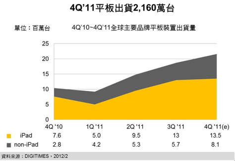 - 2011年全球品牌Tablet出貨達6,328萬臺