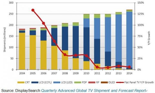 DisplaySearch:液晶電視繼續蠶食CRT和等離子電視市場