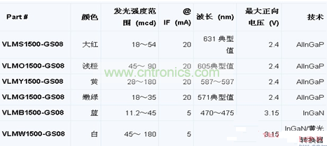 Vishay小型封裝LED發光強度實現超群亮度