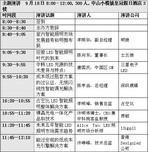演講主題有:未來五年智能LED照明市場(chǎng)需求趨勢(shì)、當(dāng)前LED燈具制造商面臨的四大發(fā)展陷阱、明微在智能調(diào)光市場(chǎng)布局和現(xiàn)有解決方案、占空比智能LED照明整體解決方案、成本低于阻容方案的線性恒流方案、崛起中的數(shù)字有線智能LED調(diào)光解決方案、外圍只需一個(gè)橋堆芯片的高集成度過安規(guī)光引擎解決方案、無頻閃低成本智能LED調(diào)光線性恒流方案、光引擎的技術(shù)發(fā)展和市場(chǎng)需求趨勢(shì)、中韓LED光源的技術(shù)差異和購買指南、目前LED驅(qū)動(dòng)電源技術(shù)開發(fā)和市場(chǎng)需求趨勢(shì)、低成本動(dòng)態(tài)LED景觀照明解決方案和依托臨江開發(fā)中國東部沿海LED照明市場(chǎng)。[page]