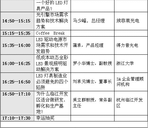 本屆研討會(huì)確定參會(huì)及發(fā)表演講的嘉賓有明微副總經(jīng)理李照華、占空比銷售總監(jiān)李明峰、昂帕CEO 許明偉博士、士蘭微董事長陳向東、DesignLed技術(shù)總監(jiān)許崢嶸、晟碟總經(jīng)理陳亨由、埃菲萊總經(jīng)理馬少峰、三星LED總經(jīng)理唐國慶、飛泰科技董事長董 沛、iSuppli LED照明市場(chǎng)分析師Alice Tao、3A企業(yè)管理顧問機(jī)構(gòu)董事長劉承元博士、德力普產(chǎn)品經(jīng)理蒲承、浙江大學(xué)羅小華教授、杭州臨江高新開發(fā)區(qū)常務(wù)副主任吳立群教授。