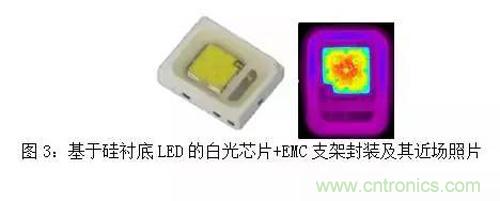 (3)垂直結構的芯片,不僅可以采用陶瓷封裝工藝,也可以采用更為廉價的支架封裝方式,進一步降低客戶的使用成本,如圖3所示,這為高品質照明提供了無限的可能。利用硅襯底LED芯片,可實現照明品質更佳、系統成本更低、設計方案更靈活、更具創新性的LED照明解決方案。