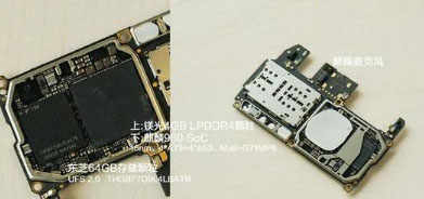 主要的芯片有鎂光4GB LPDDR4顆粒+麒麟960(整合封裝)、旁邊則為東芝64GB UFS 2.0顆粒。而背面則緊湊地放置了射頻芯片、電源管理芯片等等。
